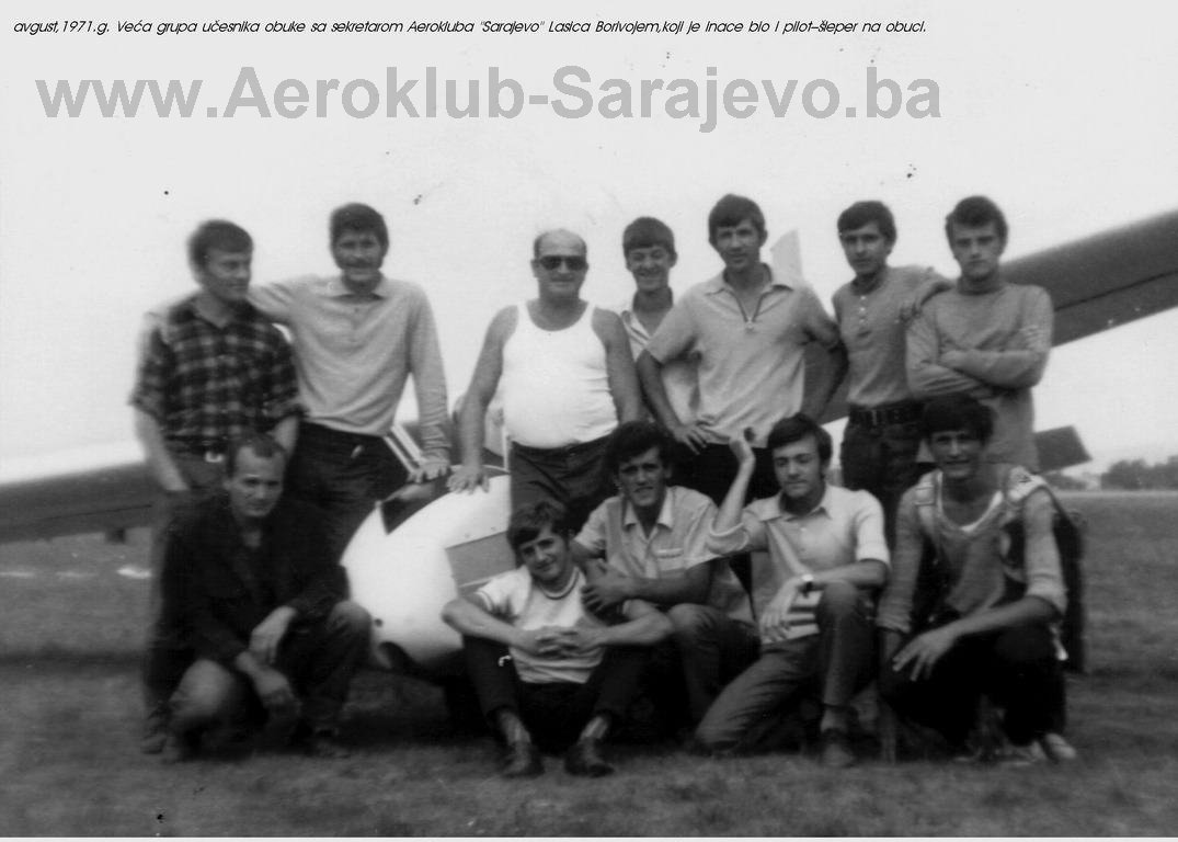 Jedriličarska obuka 1971.g. je bila organizovana na nivou VS BiH i održana je u okviru RVC “Viktor Bubanj” na sportskom aerodromu Butmir u periodu od 25.07.1971. do 31.08.1971.g. Ukupan broj učenika na obuci je bio 16 i to: AK Sarajevo 10, Ak Mostar 3, AK Zenica 2 i AK Tuzla 1 učenik. Bili smo podjeljeni u dvije grupe, a nastavnici su bili Slobodan Kosovac i Šečić Ismet. Povremeno su u ispomoć dolazili i nastavnici Minić Jakša i Tomašević Stanko.