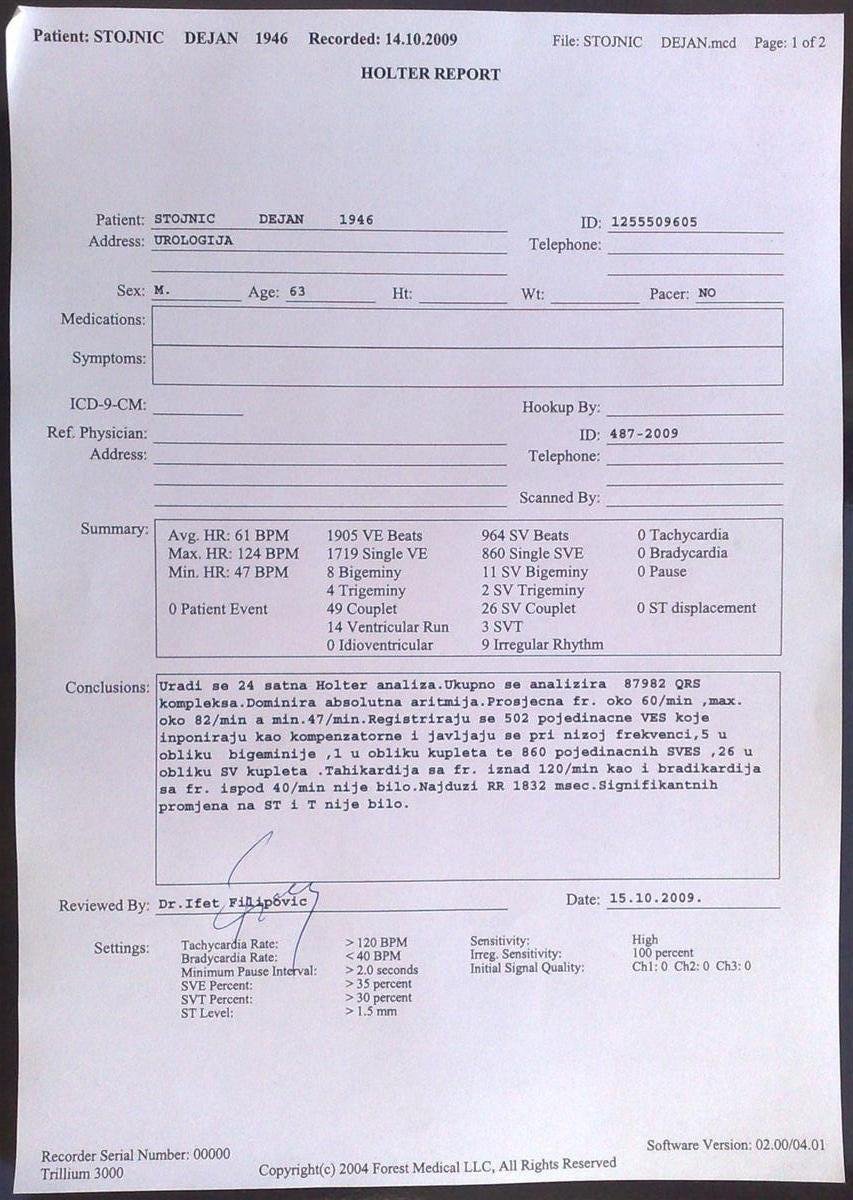 Elem, pošto sam ja elektroinžinjer koji se podosta razumije u vodovodne instalacije i SUS motore, ali ne tako dobro u nalaze EKG, evo vam faksimil tog nalaza: